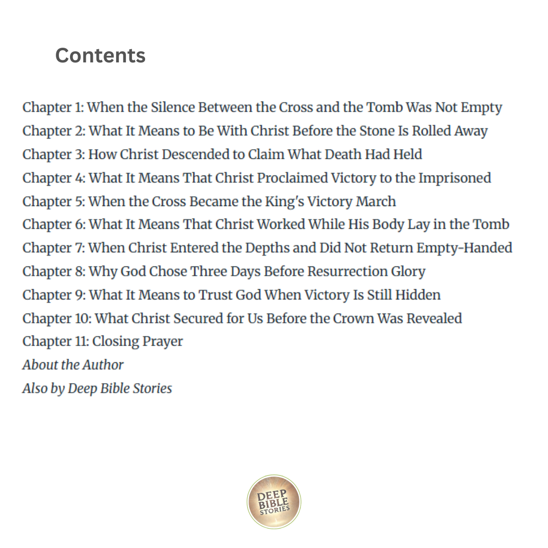 This powerful eBook was created to go hand-in-hand with our Deep Bible Stories video on Between Cross and Resurrection. What happened in the space between Friday’s grief and Sunday’s glory? This devotional explores the sacred silence of Holy Saturday—a space where hope seems buried, but God is still at work. If you’ve ever waited in darkness, this study offers assurance that resurrection always follows the Cross.