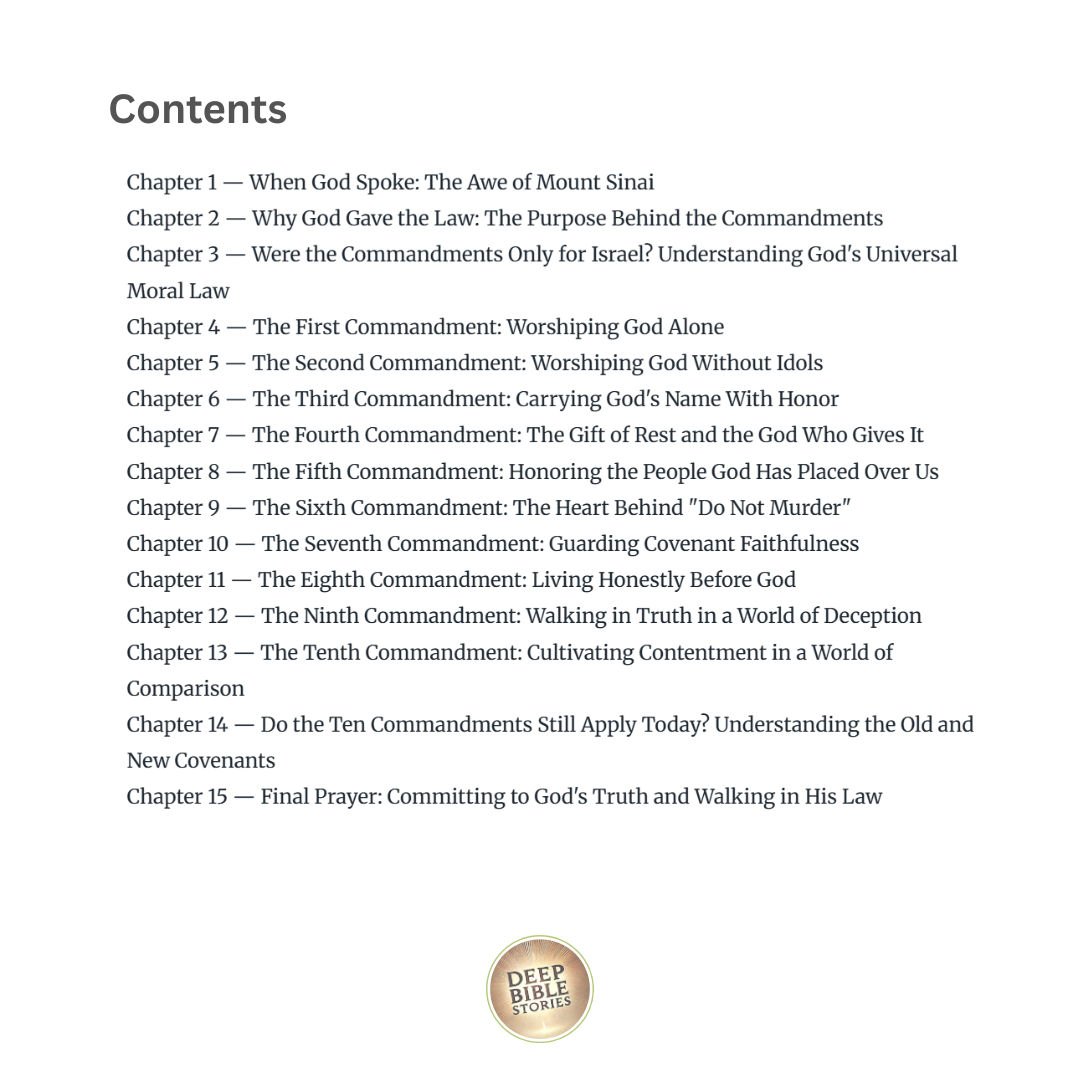 Discover the deeper meaning behind God's timeless commands with this heartfelt devotional companion to our Deep Bible Stories video on The 10 Commandments. If you've ever longed for clarity, conviction, or a renewed sense of purpose in your walk with God, this study will draw you back to the foundational truths that shape holy living.