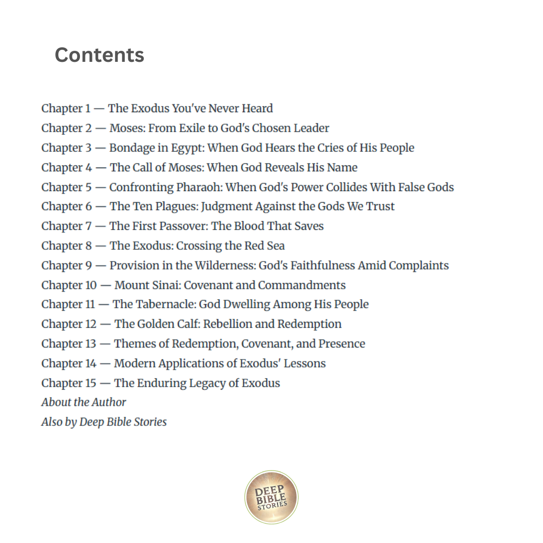 This devotional-style eBook includes 15 carefully written chapters, each walking you through Scripture with explanation, reflection, and application. It’s not rushed. It’s not overwhelming. Just a steady journey through Exodus, one truth at a time.