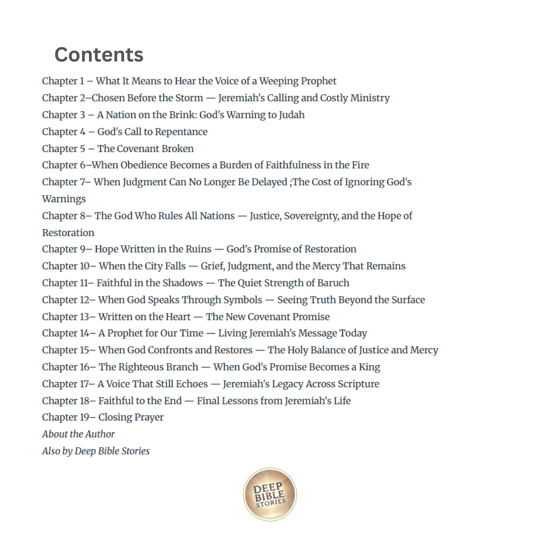 This powerful eBook was created to go hand-in-hand with our Deep Bible Stories video on the Book of Jeremiah. Known as the “weeping prophet,” Jeremiah spoke hard truths to a rebellious nation—yet his message is saturated with God’s heart of compassion and a call to return. This devotional walks with you through Jeremiah’s bold obedience, personal anguish, and the hope of a new covenant written on the heart.